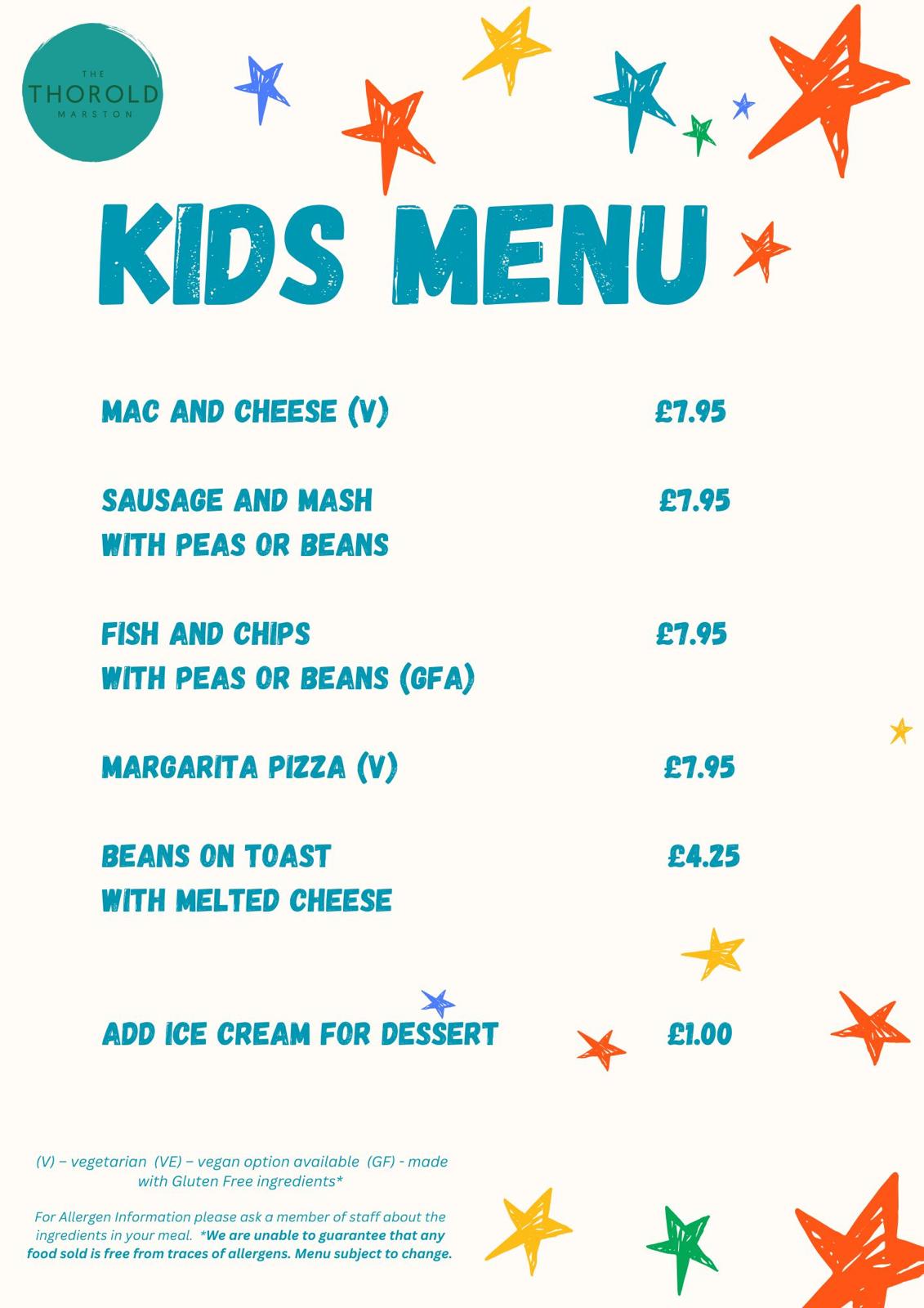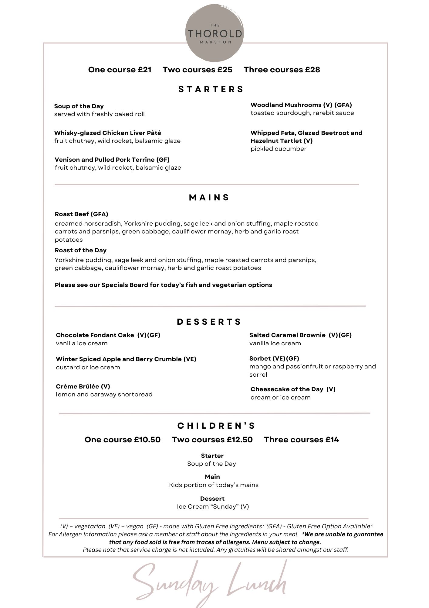 Additionally there is a Children's Menu, Sunday Lunch Menu and a Specials Board.