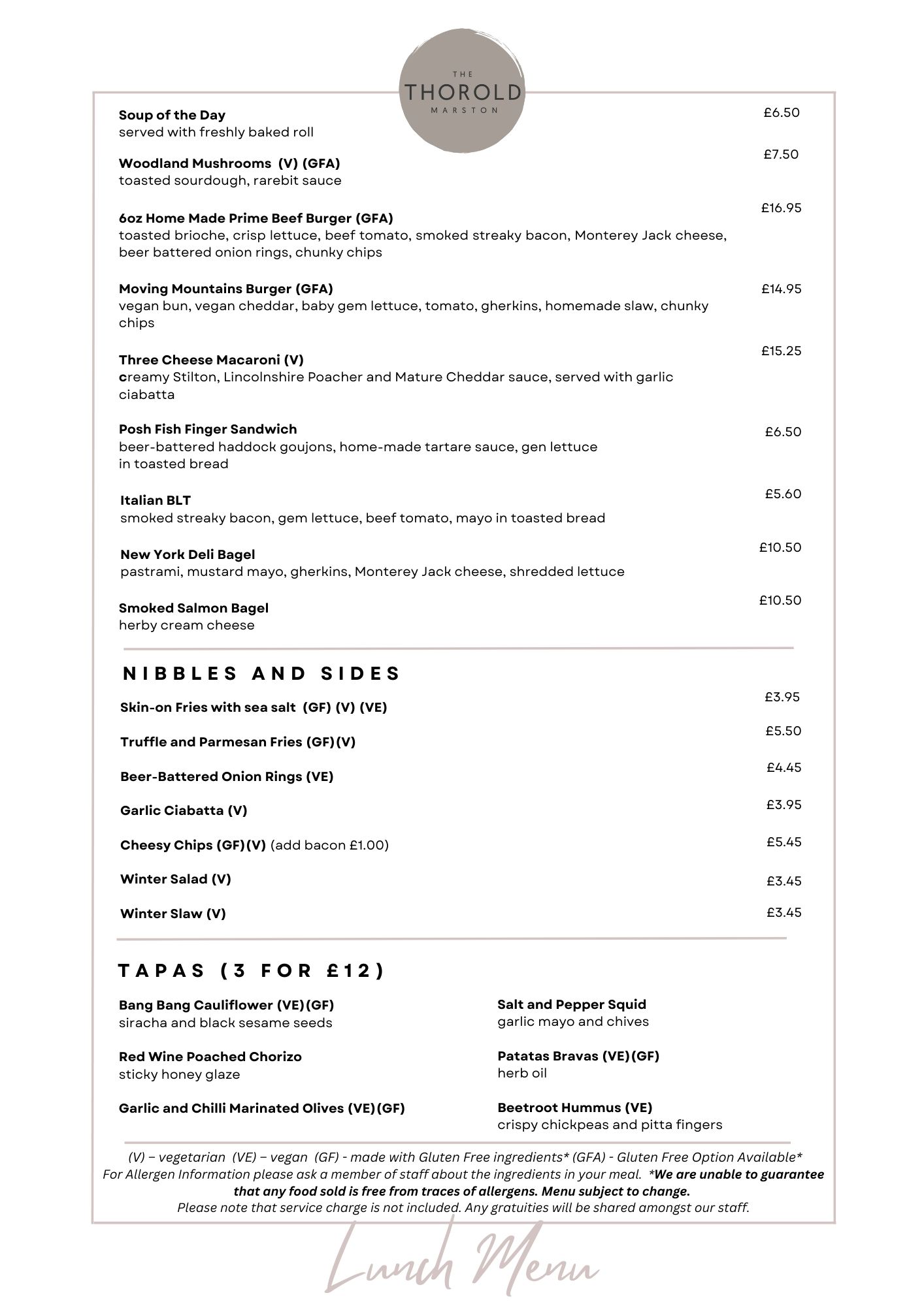 The Lunch Menu is served from Monday to Saturday (excluding Wednesday) Lunchtimes.